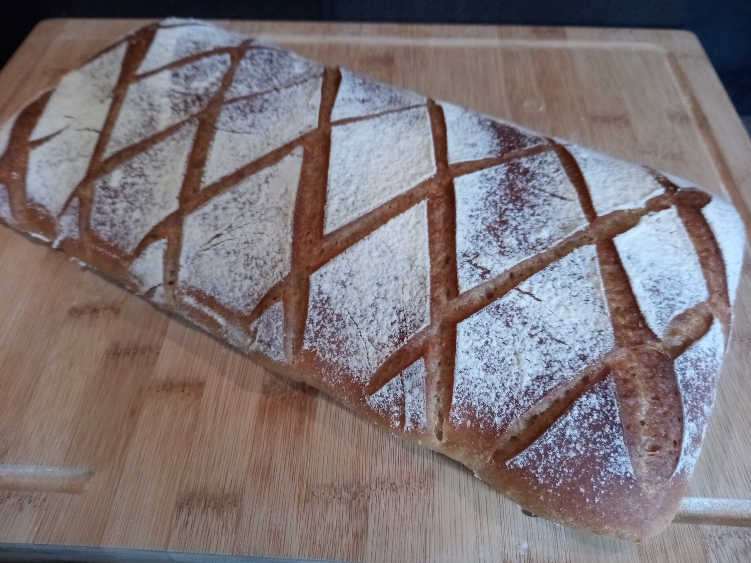 Temps de pousse plus important que la pousse rapide, qui permet d’obtenir un pain de qualité supérieure, avec une mie plus alvéolée et une croûte plus croustillante. Farine T55/T65 : 600 gr (campagne : 500 gr T55/T65 + 100 gr farine de seigle)Levure : 7